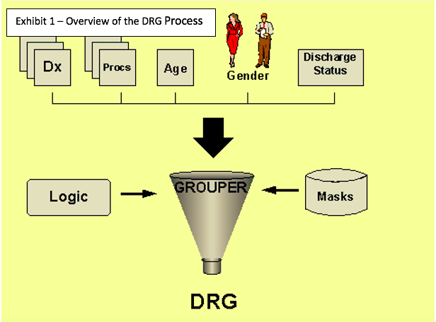Clinical information was merged with other information, including patient demographic data, to be “grouped” into the applicable DRGs (see Exhibit 1). Initially, there were 383 DRGs in 25 major diagnostic categories.